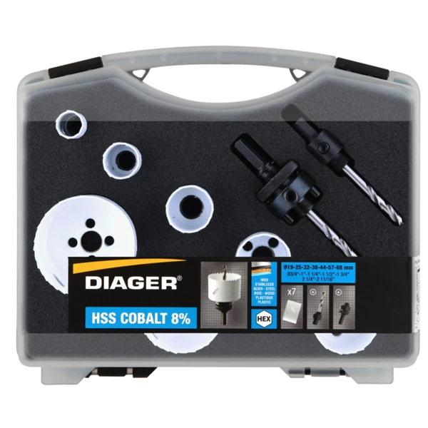 - 7 scies-cloche bimétal cobalt 8% : 19 – 25 – 32 – 38 – 44 – 57 – 68 mm