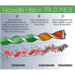 - S’utilise avec perceuse, avec un peu d’eau pour un perçage plus efficace